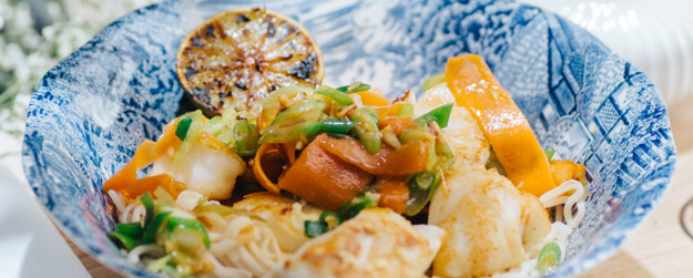 3. Torsk smaksatt med soyasaus, lime servert med nudler er en enkel, men knallgod asiatisk rett som bare må prøves. Bli inspirert til å lage din egne wok-miks med grønnsaksrester du har liggende – her er det bare å slå seg løs!